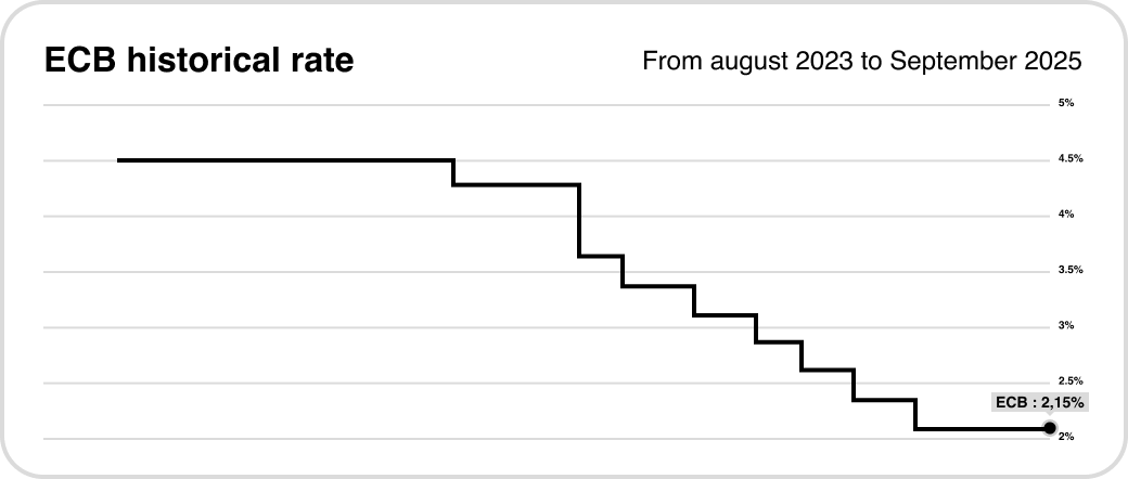 While the European Central Bank (ECB) aims to stimulate the economy and encourage investment and growth with accommodative monetary policy, interest rates are on a downward trajectory and will remain so, with the current rate at 2%.