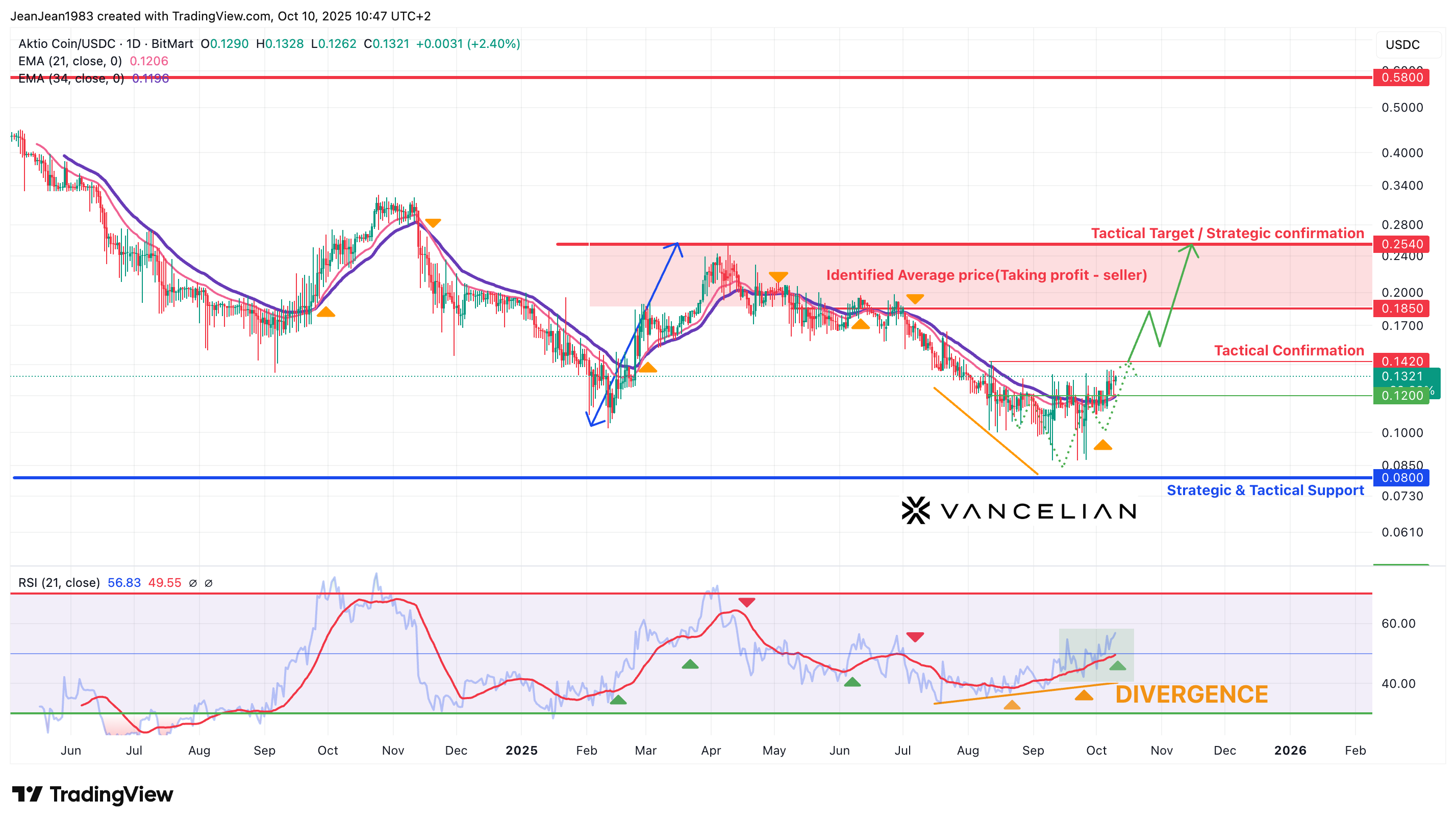 Aktio (AKTIO/USDC) si avvicina a un breakout tattico a $0.1420